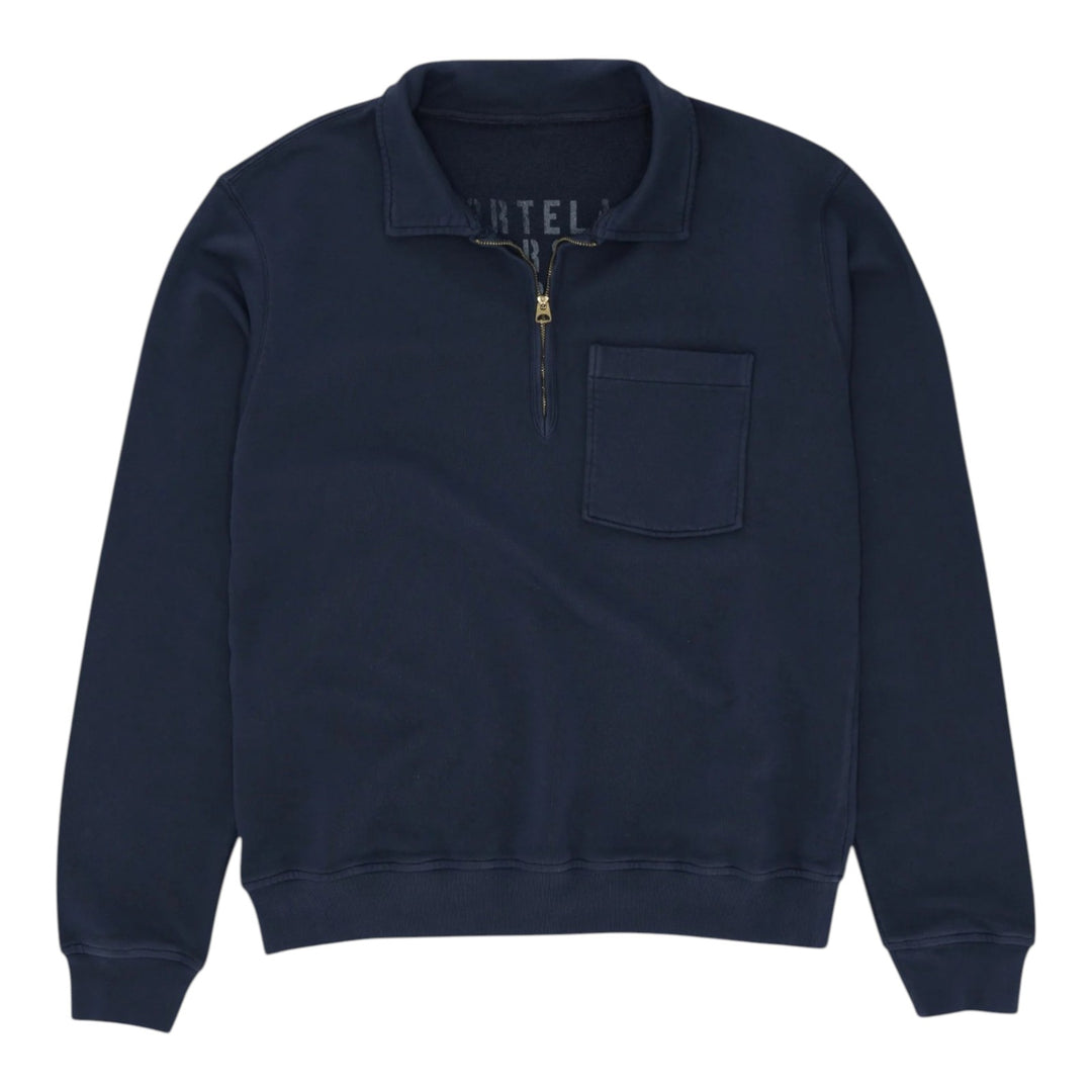 Yale Sweatshirt em Jersey Cardado com Gola e Zip Navy