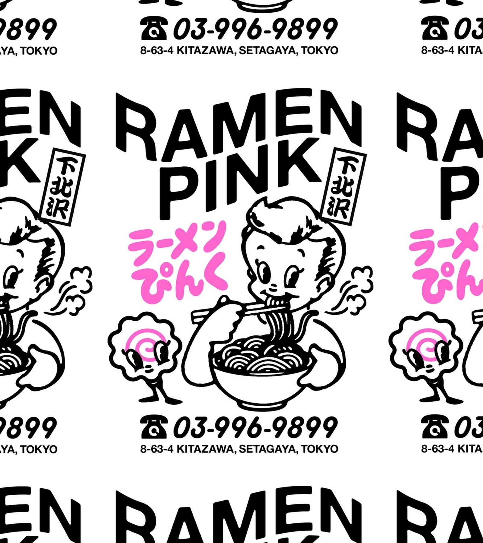 A T-shirt Ramen Pink tem um fit oversize com gola canelada, confeccionada em jersey macio. Apresenta estampados no peito e nas costas.