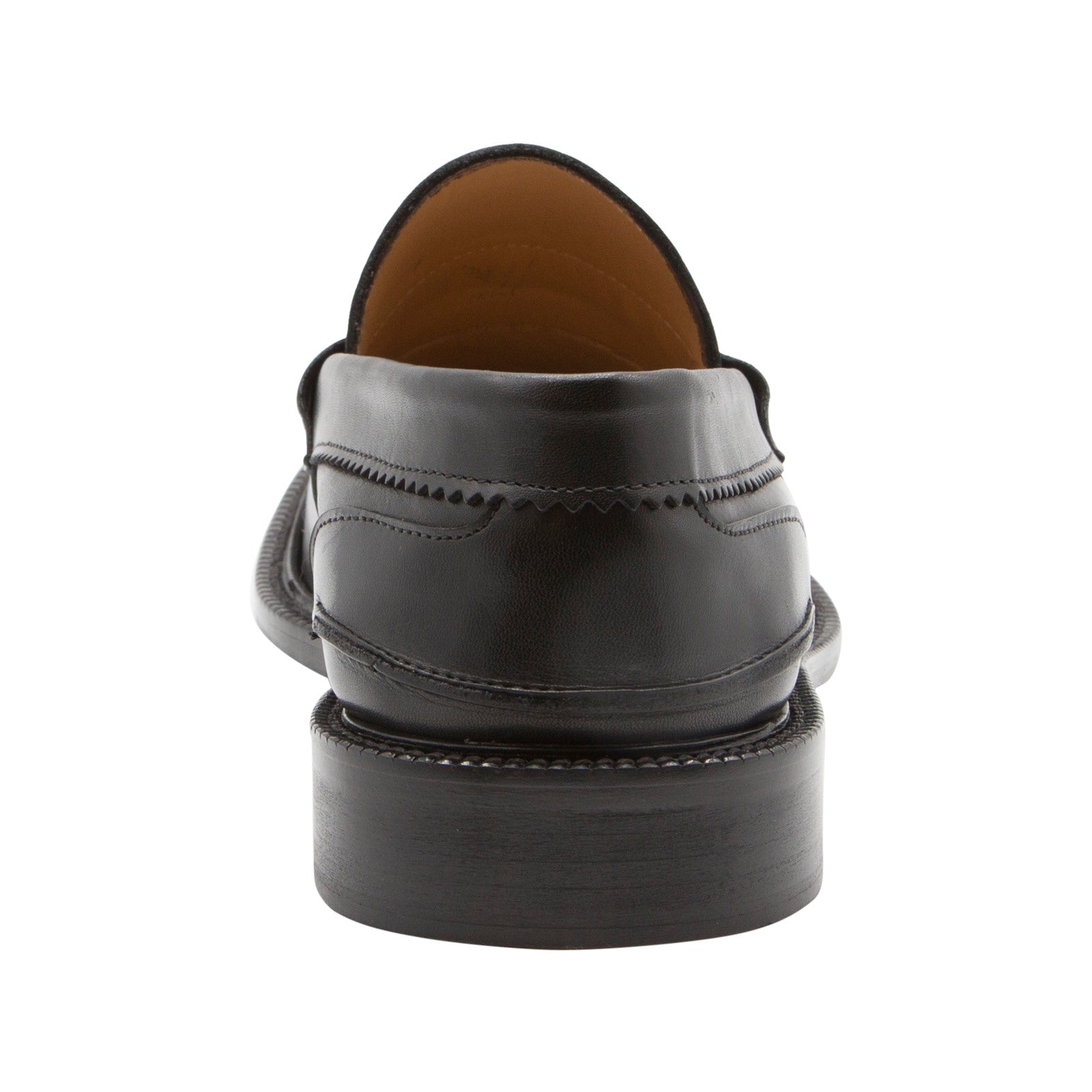 Mocassins de homem assinados pela Marotta fabricados em pele preta. Biqueira redonda com sola em couro e borracha antiderrapante cosida à mão.