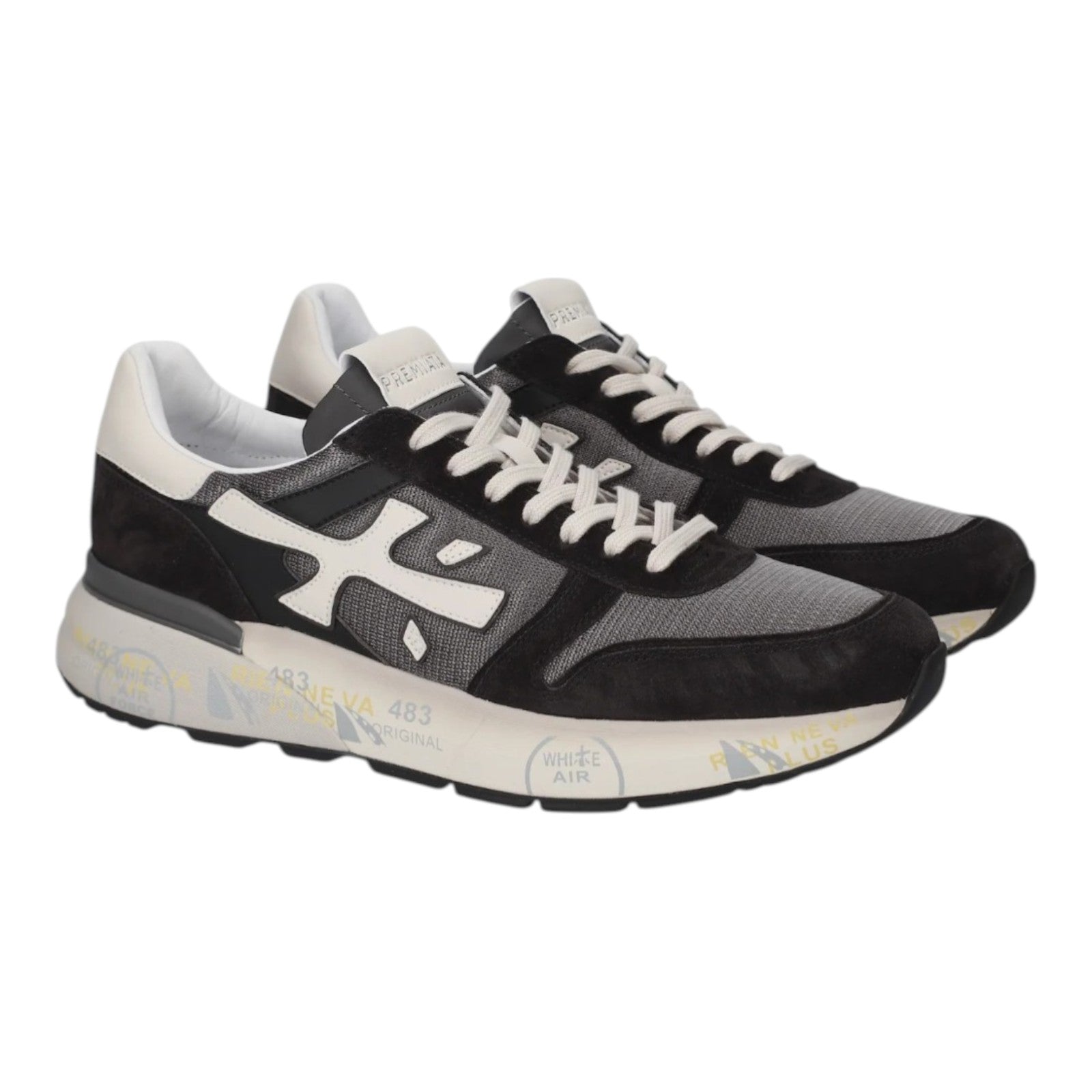 Uma mistura de materiais e peles de qualidade. O sapato é fabricado em tons escuros para um estilo casual. A silhueta icónica é enriquecida pelo logótipo Premiata.
